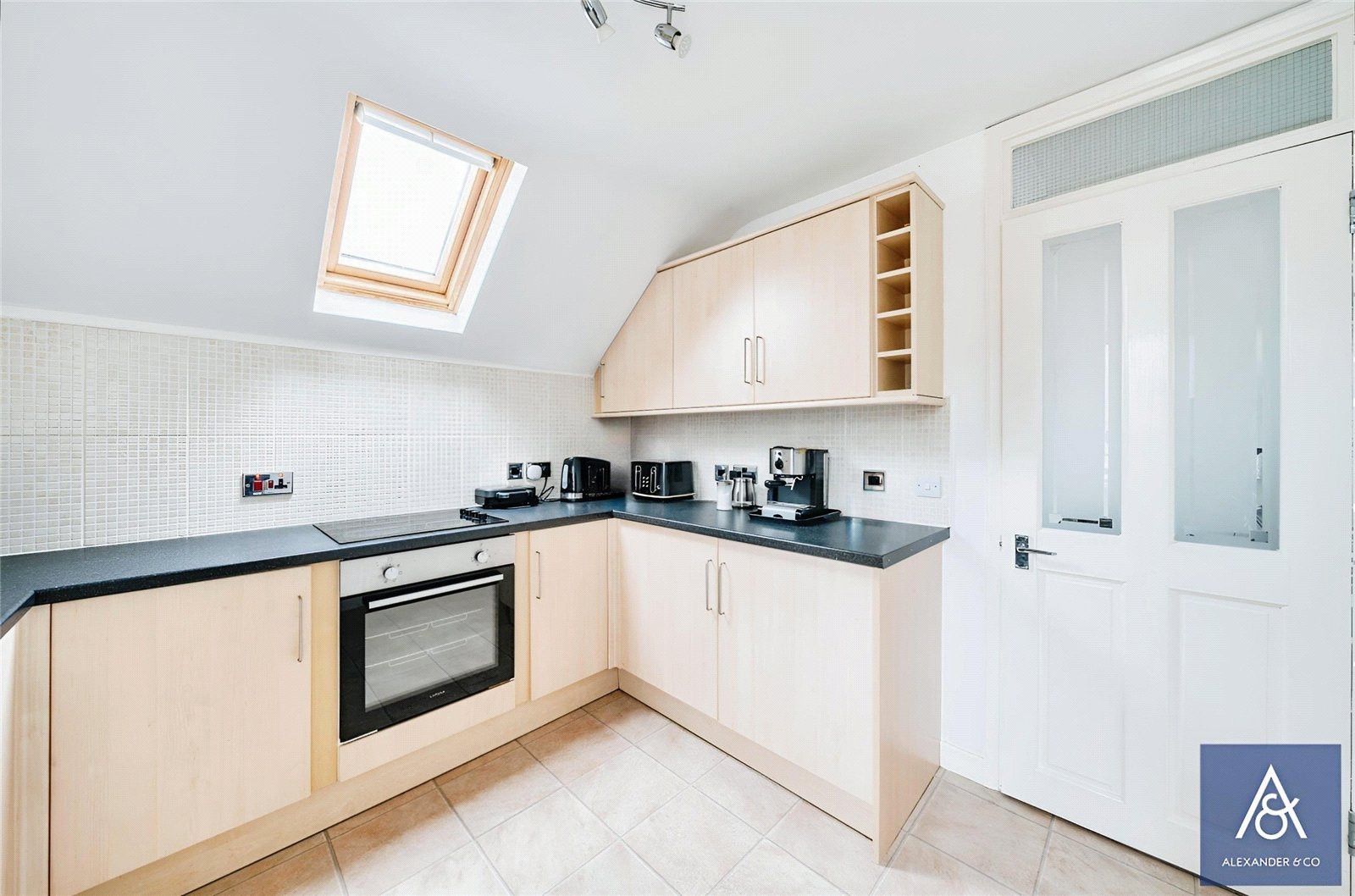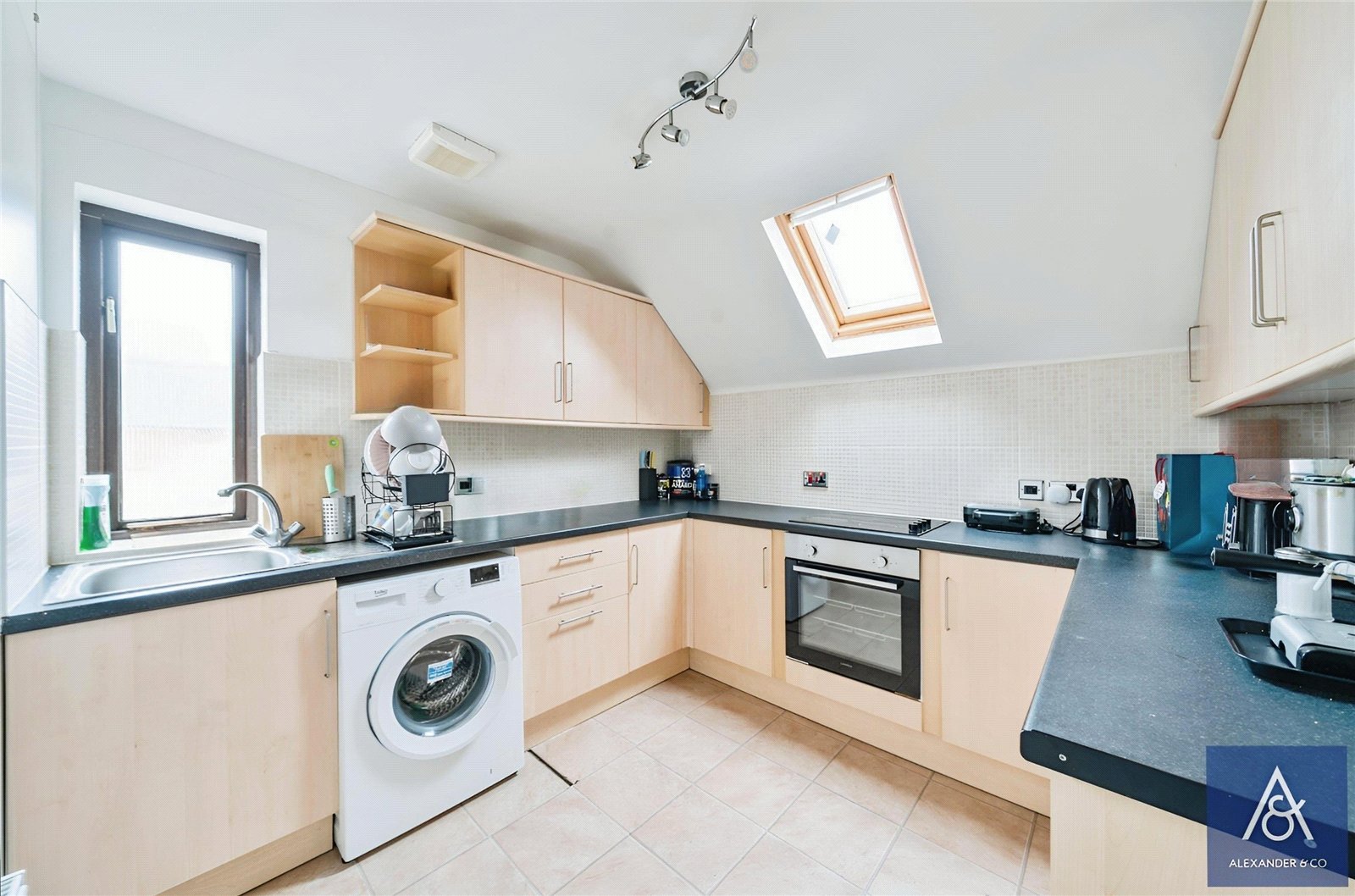 The accommodation includes a double bedroom, living room, a spacious kitchen fitted with a range of units, and there is a modern bathroom.