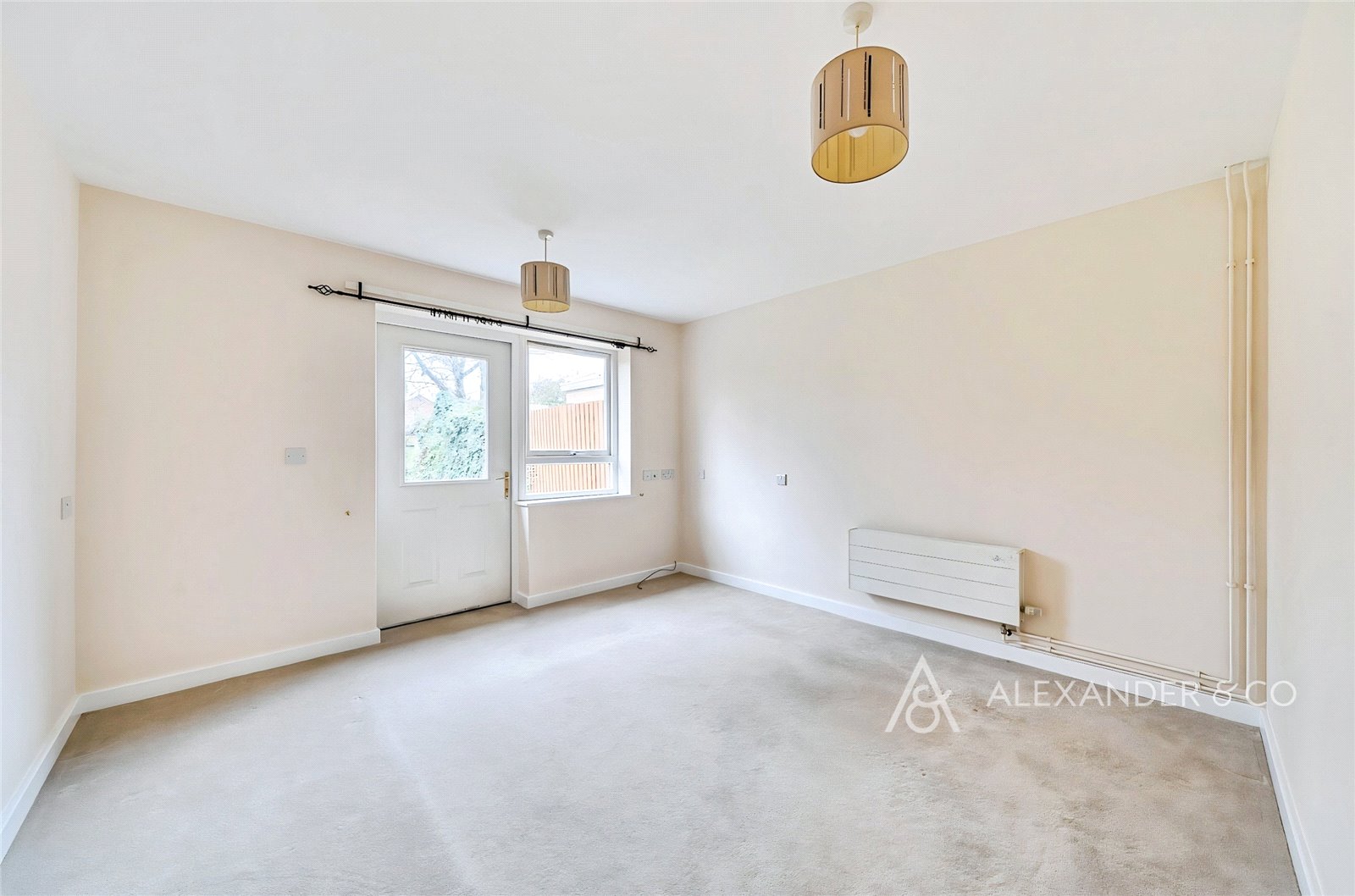 The entrance door opens into the hallway, which provides access to the kitchen, living room, bedroom, wet room, and a useful boiler cupboard. The kitchen is fitted with a range of eye and base-level units and offers space for an electric oven, fridge/freezer, washing machine, and dishwasher. The living room features a door leading out to the rear garden. The bedroom is a good-sized double, also positioned to the rear of the property. The wet room is fitted with a shower, wash hand basin, and WC.