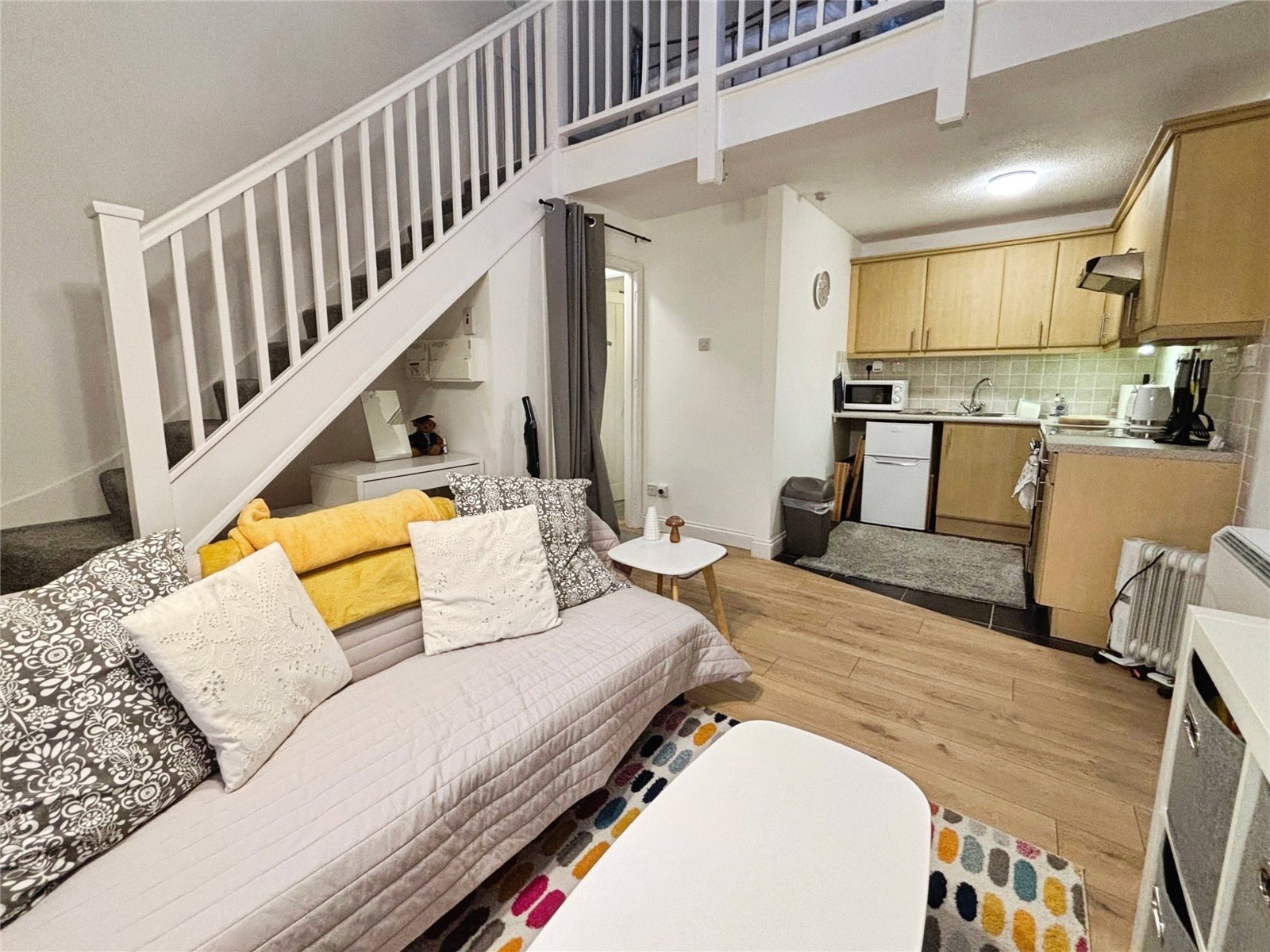 The property benefits from parking for one car and a front garden. The entrance hall leads through to an open plan kitchen/lounge with vaulted ceiling. The kitchen has a cooker with gas hob and space for a fridge freezer and washing machine.
