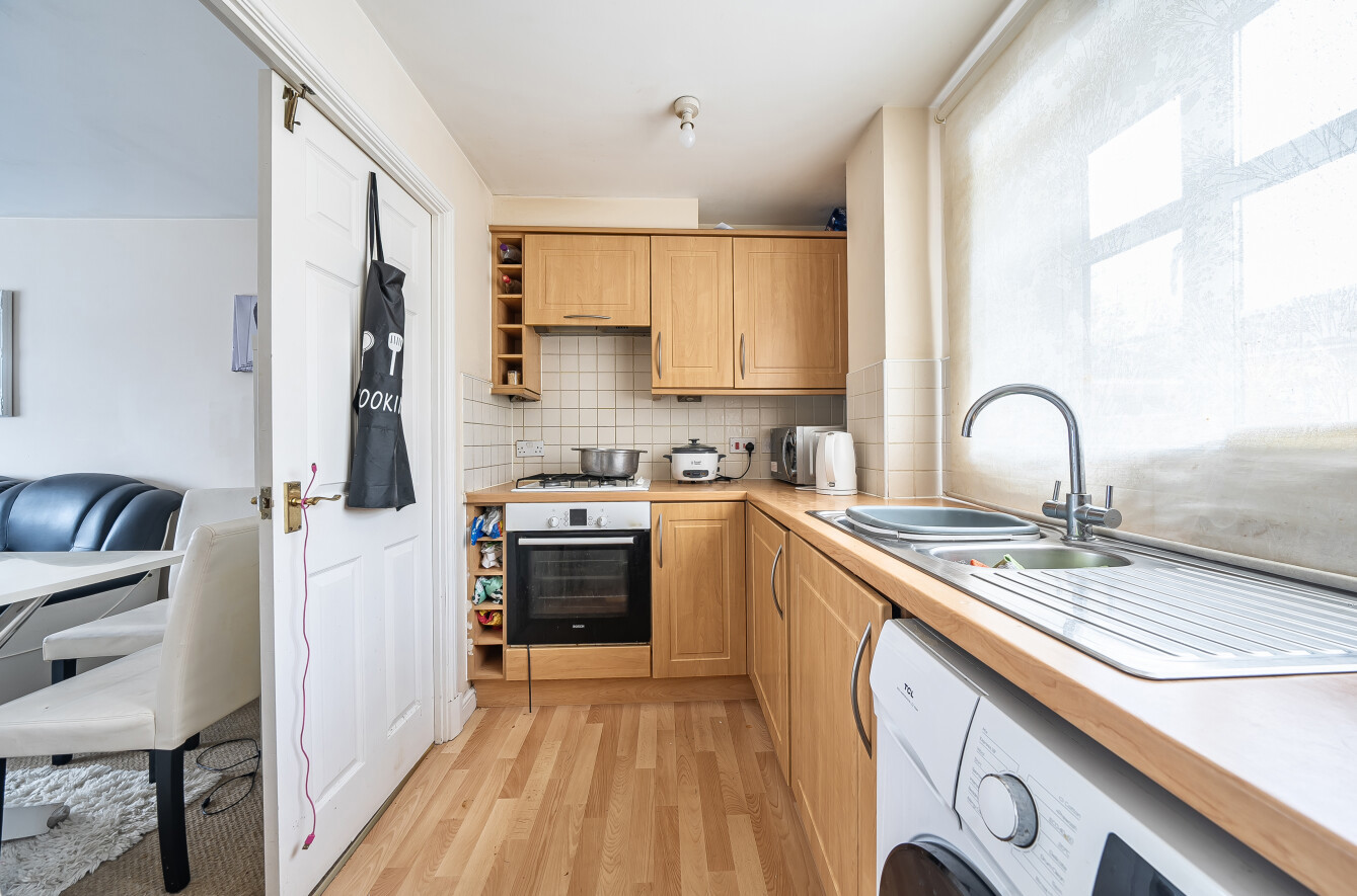 Once inside the apartment you will find two well proportioned bedrooms with the larger of them spanning over 14ft. There is a family bathroom with panel enclosed bath, low level WC and pedestal wash hand basin. Moving along the hallway and the lounge has a light and airy fell and has a door leading to the fitted kitchen with a range of eye level and base units, integrated hob and oven plus space and plumbing for washing machine and fridge freezer.
