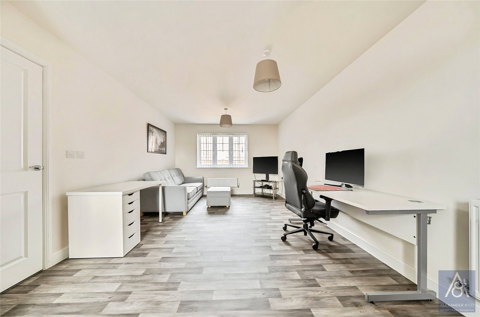 The property hosts two well-proportioned double bedrooms. The principal bedroom benefits from a modern en-suite shower room, while the second bedroom offers flexibility for use as a guest room, home office, or nursery. A stylish family bathroom completes the accommodation.
