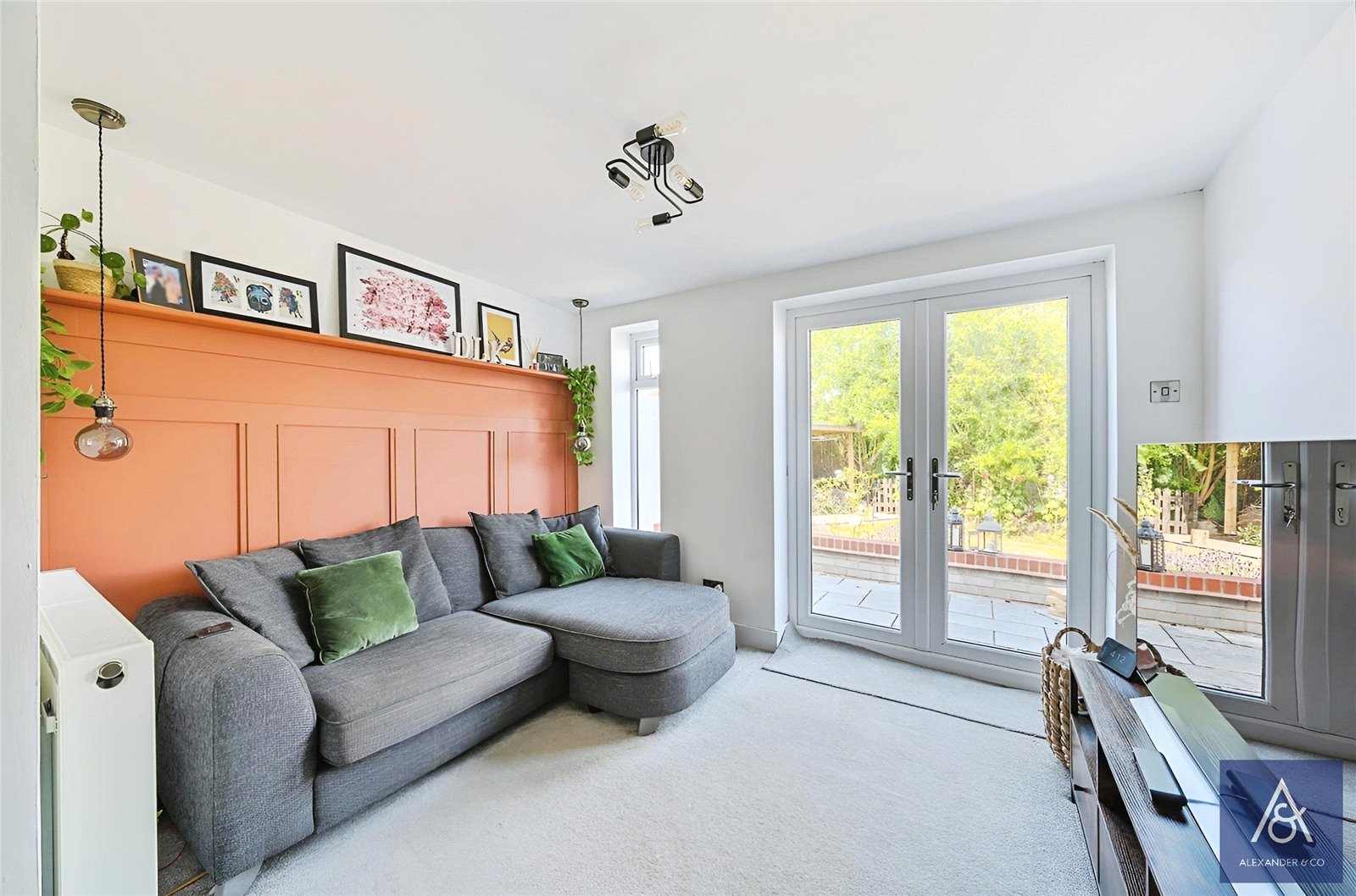 The front door opens to the hallway with cloaks hanging space and built-in store cupboard. Bedroom one is a large double front facing room with dressing area. Bedroom two is also a double size front facing room with fitted double wardrobe. The refurbished shower room is fitted with a white three-piece suite. The open plan kitchen/dining room has been comprehensively re-fitted including a peninsular breakfast bar. There are spaces for an upright fridge/freezer and a cooker with a canopy filter hood over. The kitchen/dining room is open to the utility room which is fitted in matching units and has spaces for a washing machine and a tumble dryer, a stable door opens to the rear garden. The living room is also open to the kitchen/dining room and has French doors to the rear garden with decorative panelling to one wall.