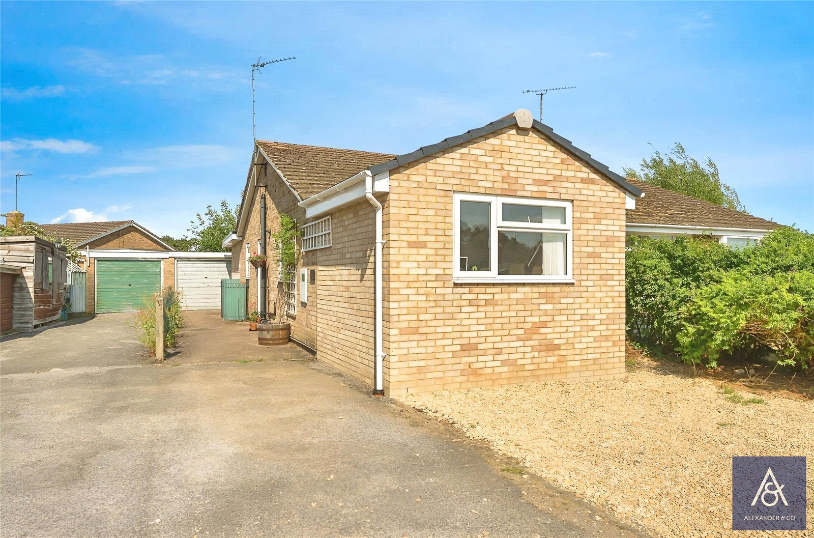 This well presented and extended two-bedroom semi-detached bungalow has been remodelled to provide open plan living space and larger than average bedrooms.