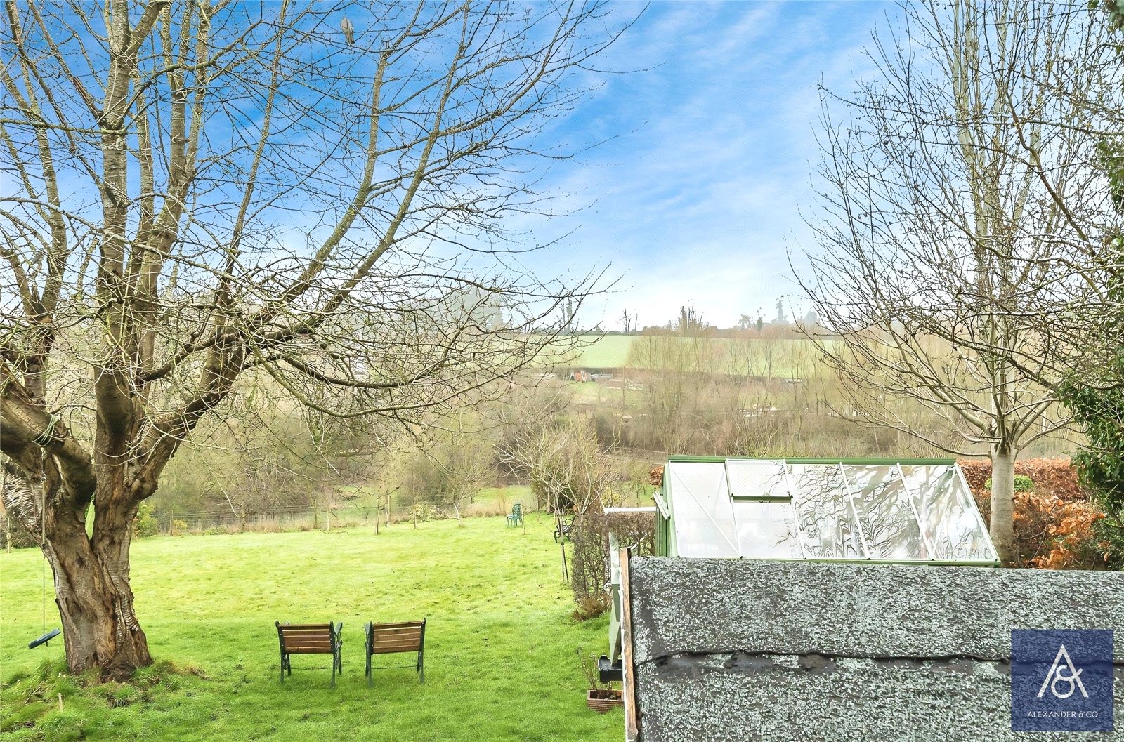 Outside, the low-maintenance rear garden is mainly laid to patio and includes a timber storage cupboard and pergola, while enjoying lovely far-reaching countryside views. Gated access leads to the front of the property, where there is driveway parking for two large vehicles.