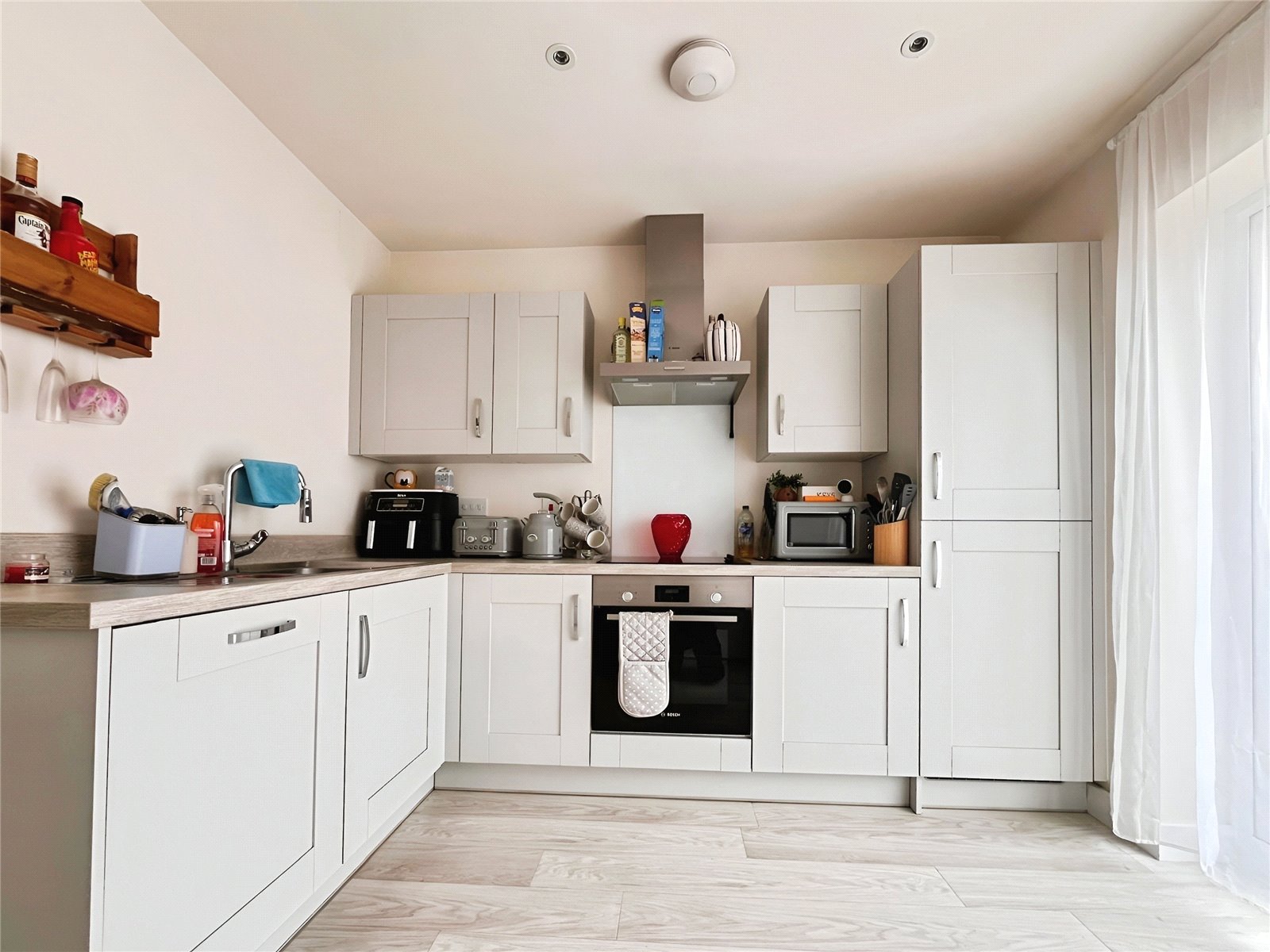 The kitchen has a wide range of eye and base level units incorporating a built-in fridge freezer, built in dishwasher, built-in oven and a ceramic hob with stainless steel splash back and extractor hood over. A useful utility area provides space for a washing machine and further storage space. The property also has a useful cloakroom with a wash hand basin, WC and a wall mounted cupboard.