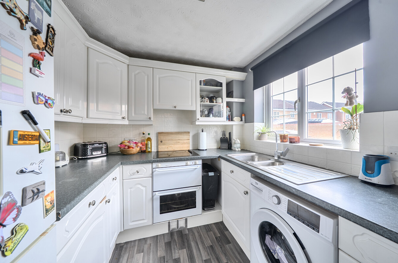 The accommodation includes entrance hall, kitchen, living room, landing, two bedrooms and a bathroom. Externally there is driveway parking for two cars and a private rear garden.