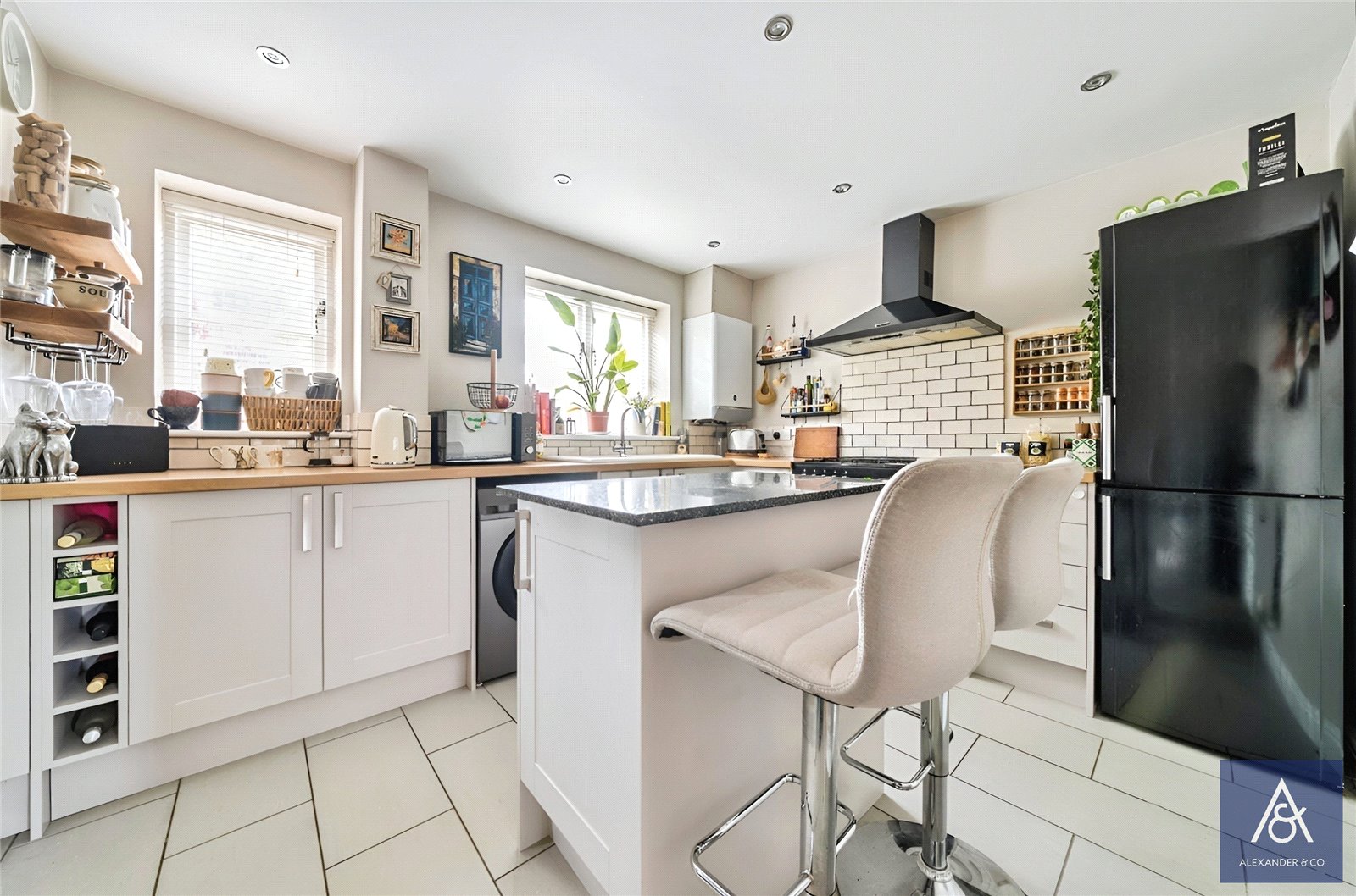 The kitchen is to the front of the property and has been fitted with a range of base and wall units with rolled edge worksurfaces. There is a wonderful range cooker and an island unit which provide additional granite covered workspace or breakfast bar with storage below. The spacious light and airy lounge is to the rear of the property with its superb wood flooring and cozy log burner. The rear extension is currently being used as a study as it’s a great space to work from home, looking out onto the South West facing rear garden with French doors accessing it too.