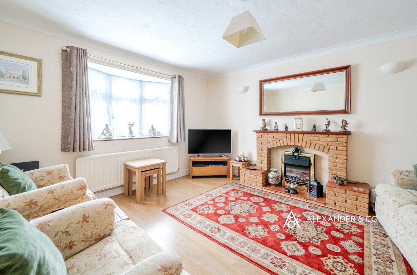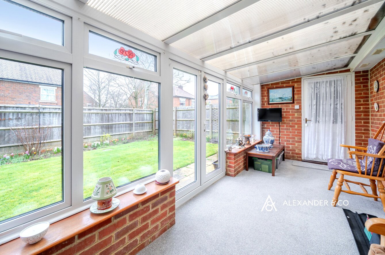 The property is located in a quiet cul de sac location withing walking distance to the town centre and the station. Upon entering the property into the hall which has laminate flooring and has doors to; a spacious living room with a bay window to the front and a feature brick fireplace with hearth and mantle over and electric fire. The kitchen is light and spacious with plenty of room for table and chairs. There is a range of wooden base and eye level cupboards with work tops over. There is an electric hob with extractor hood over and an electric grill and oven. Under the work tops there is space for washing machine and dishwasher. There is a large window overlooking the garden to the rear and a door leading into the conservatory offering a useful space for admiring the garden. There are double doors opening out into the garden and a door into the garage.