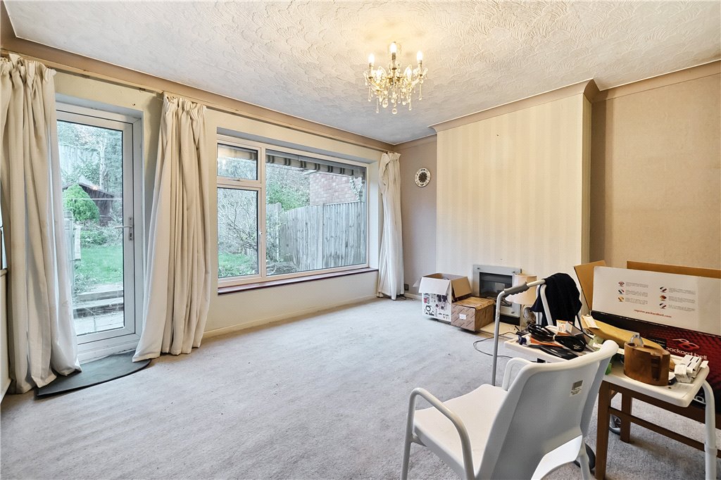 The versatile accommodation includes entrance hall, lounge, kitchen, three bedrooms (one of which could be used as a dining room) and shower room. Externally is a driveway leading to the garage, there is also a mature rear garden with gated side access. The boiler was fitted in 2020.