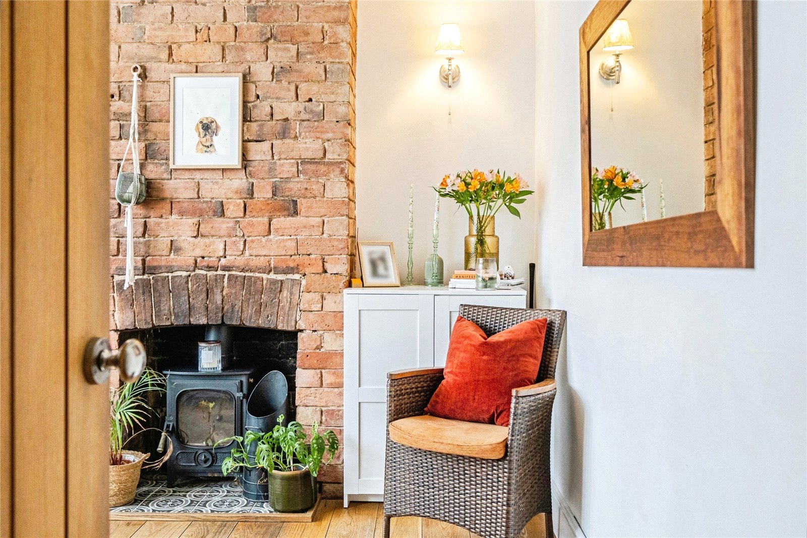 The ground floor consists of a good sized living room to the front aspect, with a functioning log burner, large bay windows and wooden flooring throughout. The kitchen diner is lined with shaker style cupboards, wooden worktops and a beautiful feature brick fireplace with a bertazonni gas cooker. To the rear, a separate utility space is located with space for a washing machine plus dryer, laundry cupboard and storage space. This follows to the main three piece family bathroom with extractor.