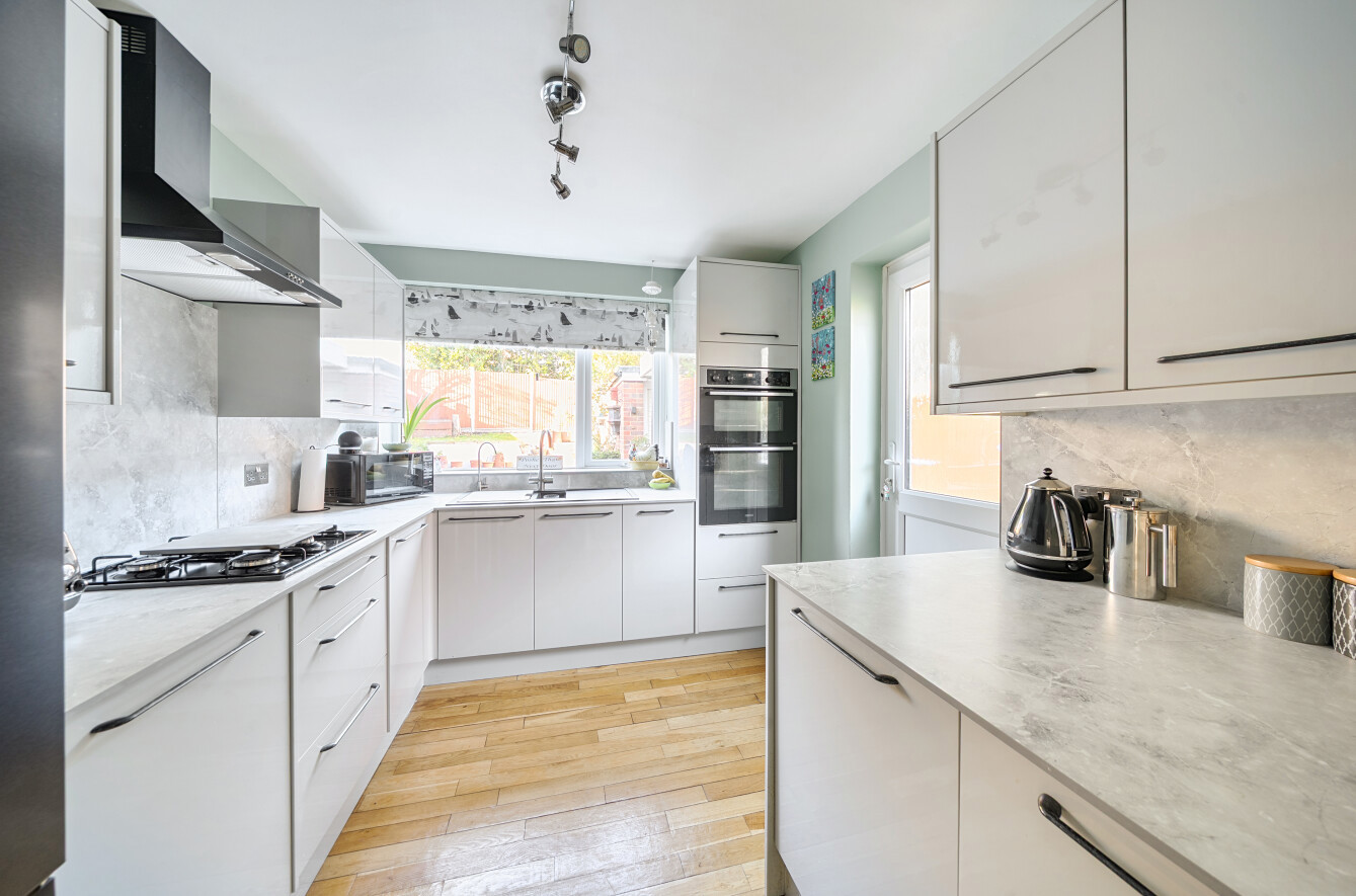 The property is situated opposite a green area with mature trees. There is easy access to good schools, local parade of shops, M1 junction 9 and good bus routes.