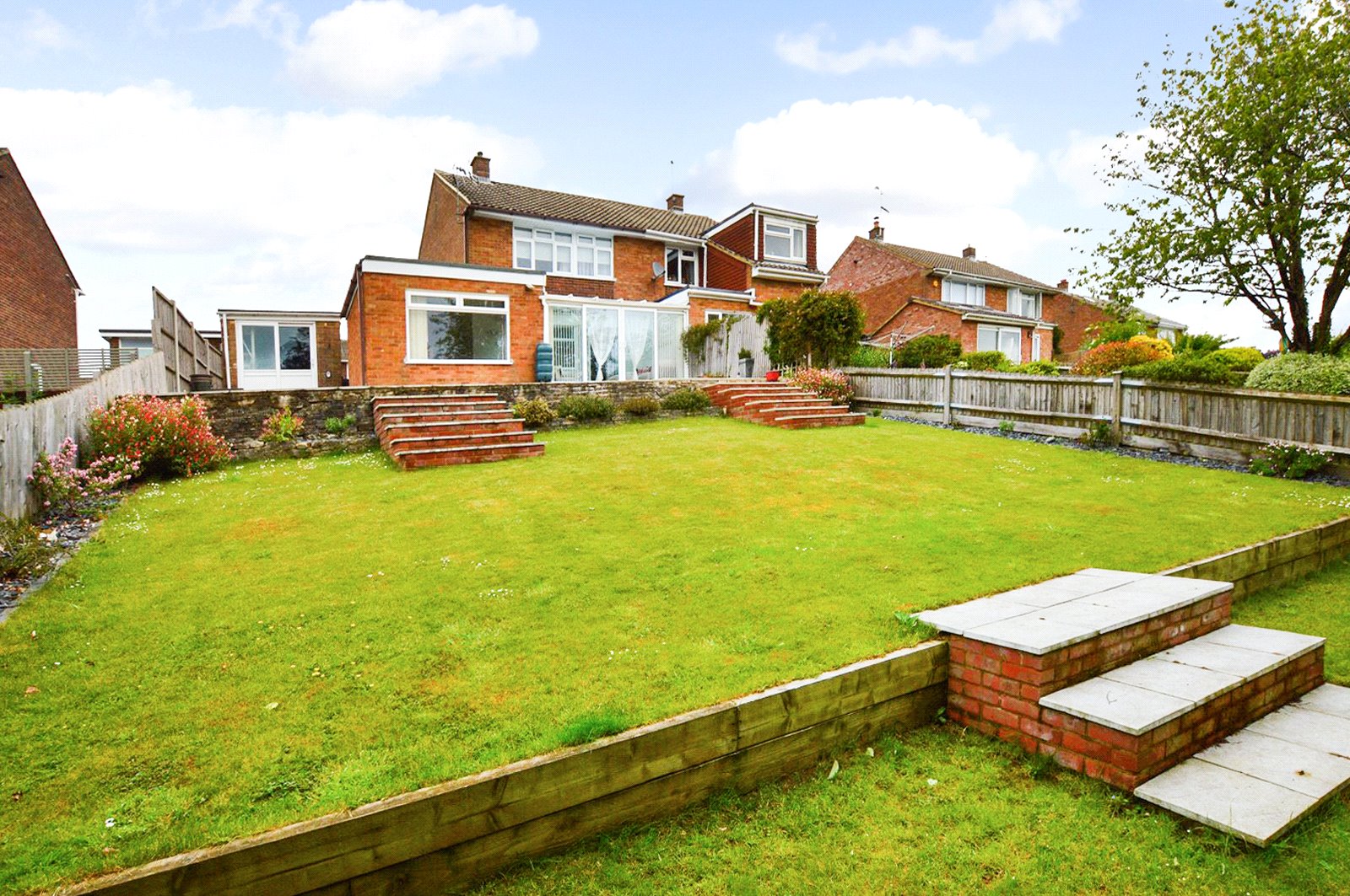The accommodation includes entrance porch, entrance hall, refitted kitchen, lounge, sun lounge, dining room, cloakroom, landing, three bedrooms and refitted bathroom. Externally there is a detached larger than average garage, block paved driveway for several vehicles and an attractive rear garden. There are rooftop views to the rear looking over Dunstable Golf Club.