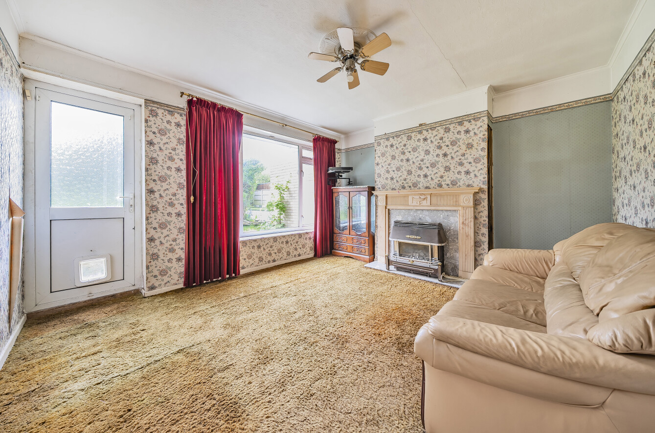 The property is in need of updating throughout and offers entrance hall, lounge, kitchen, three bedrooms and bathroom. Externally there is a garage, driveway parking and a mature rear garden.