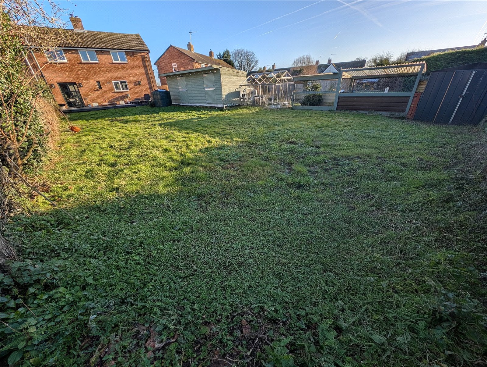 The rear garden is ideal for families and entertaining, with a large painted decking area and a large lawned garden offering space for play, planting, or further landscaping. Two powered stable areas provide excellent flexibility for home offices, hobby rooms, or a home gym, alongside a metal storage shed and chicken coop.