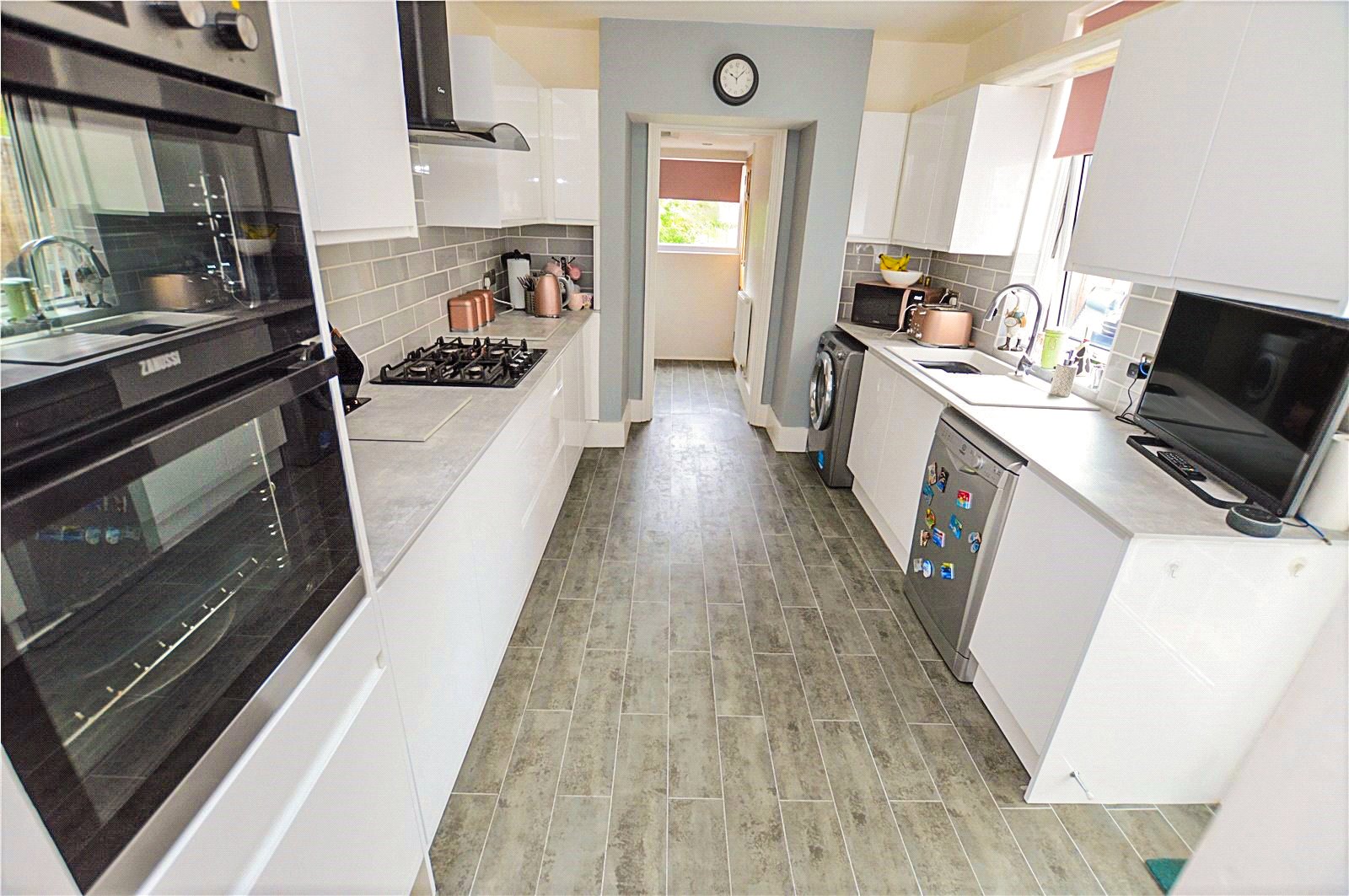 The spacious accommodation includes entrance hall, lounge with feature fireplace, dining area, refitted kitchen in 2020, utility room and cloakroom. On the first floor are three bedrooms and a refitted shower room.