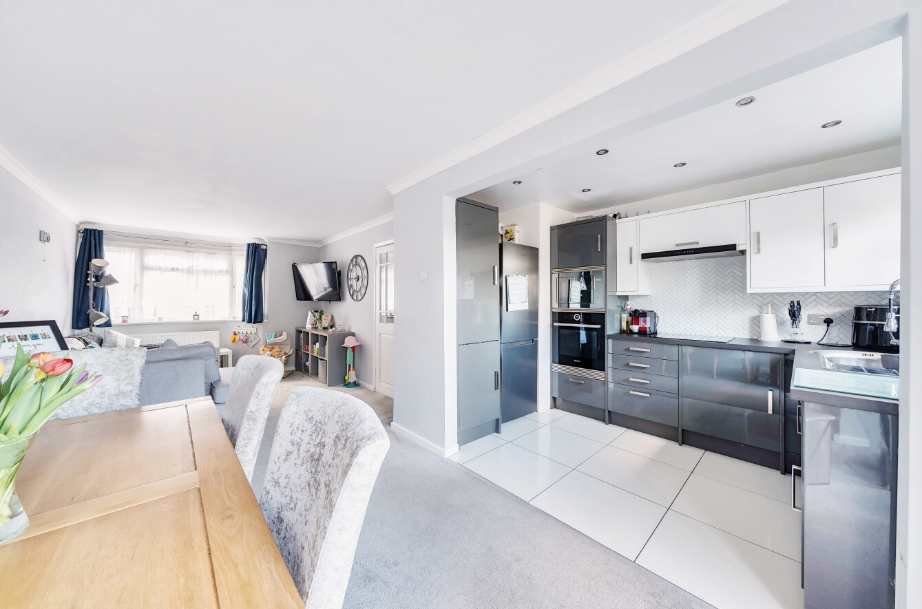 The accommodation includes entrance hall, dual aspect lounge/diner, re-fitted kitchen, three bedrooms and refitted family bathroom. Externally is the rear garden in excess of 100ft long and driveway parking to the front for several vehicles.
