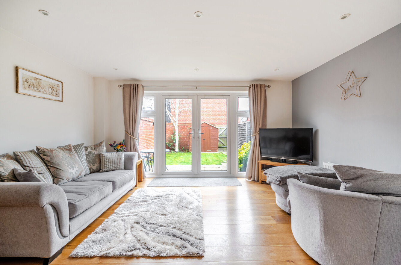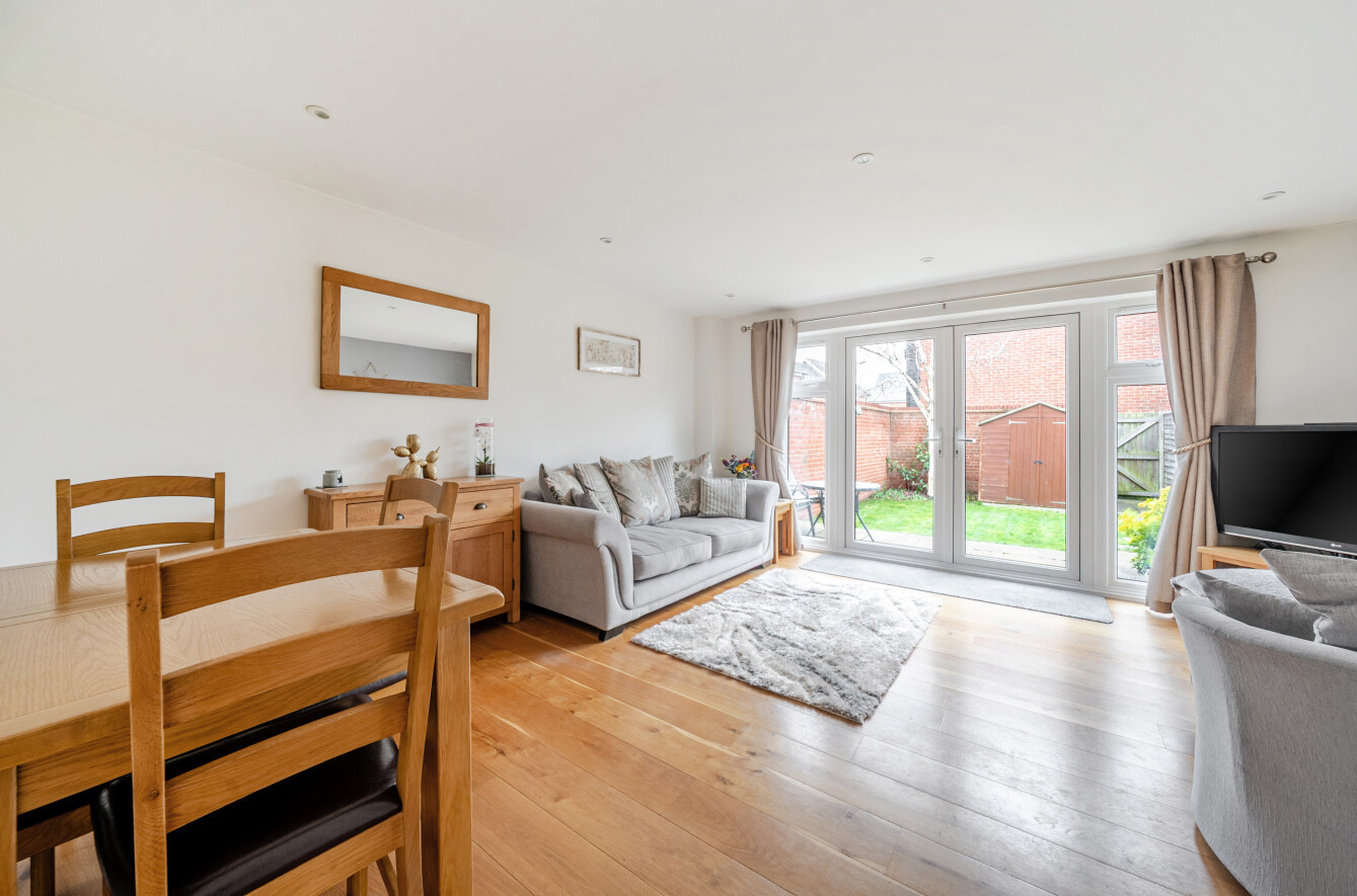 Ground Floor: entrance hall, fully fitted kitchen with integrated appliances, downstairs WC and a bright and airy living/dining space with wooden flooring and French doors leading to the garden.