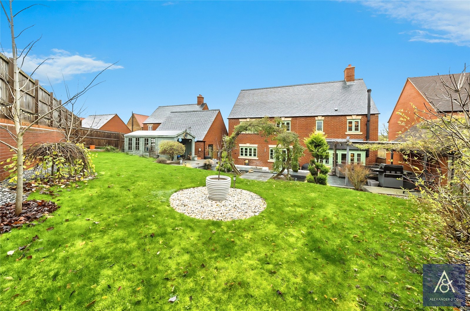 Alexander & Co are pleased to bring to the market this wonderful four-bedroom detached executive family home, which has been loved and cherished by its current owners and is presented in stunning condition throughout. The property offers a fantastic kitchen-dining-family room with an island, a separate dining room, lounge, and playroom. The beautifully landscaped rear garden is complemented by a double garage that overlooks open parkland, which is set at the end of a cul-de-sac on the popular Radstone Fields development of Brackley.