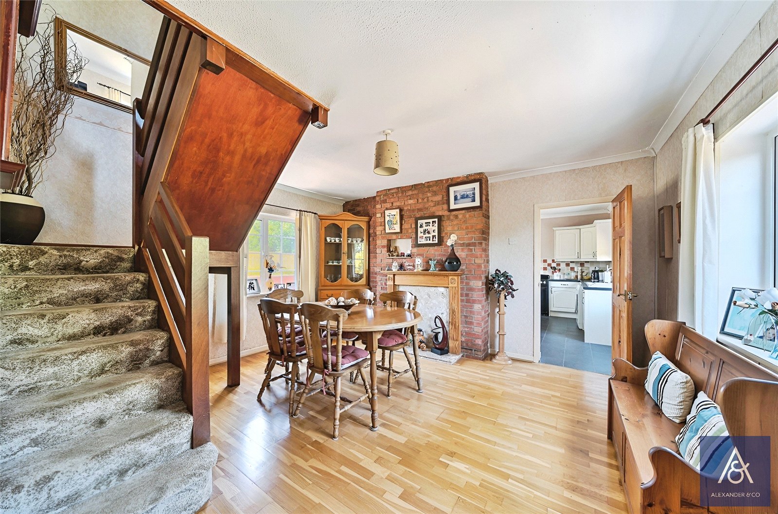 Set back from the lane, the property has a private driveway offering ample parking. The home is filled with natural light thanks to its double aspect windows throughout. The kitchen-diner is very much the heart of the home — a sociable, spacious room perfect for family living and entertaining. This flows easily into the separate dining room, which provides further flexibility as a formal dining area or second family room. The dual-aspect lounge has a welcoming feel, complete with exposed wooden beams, a feature fireplace and countryside views. A downstairs cloakroom completes the ground floor accommodation.