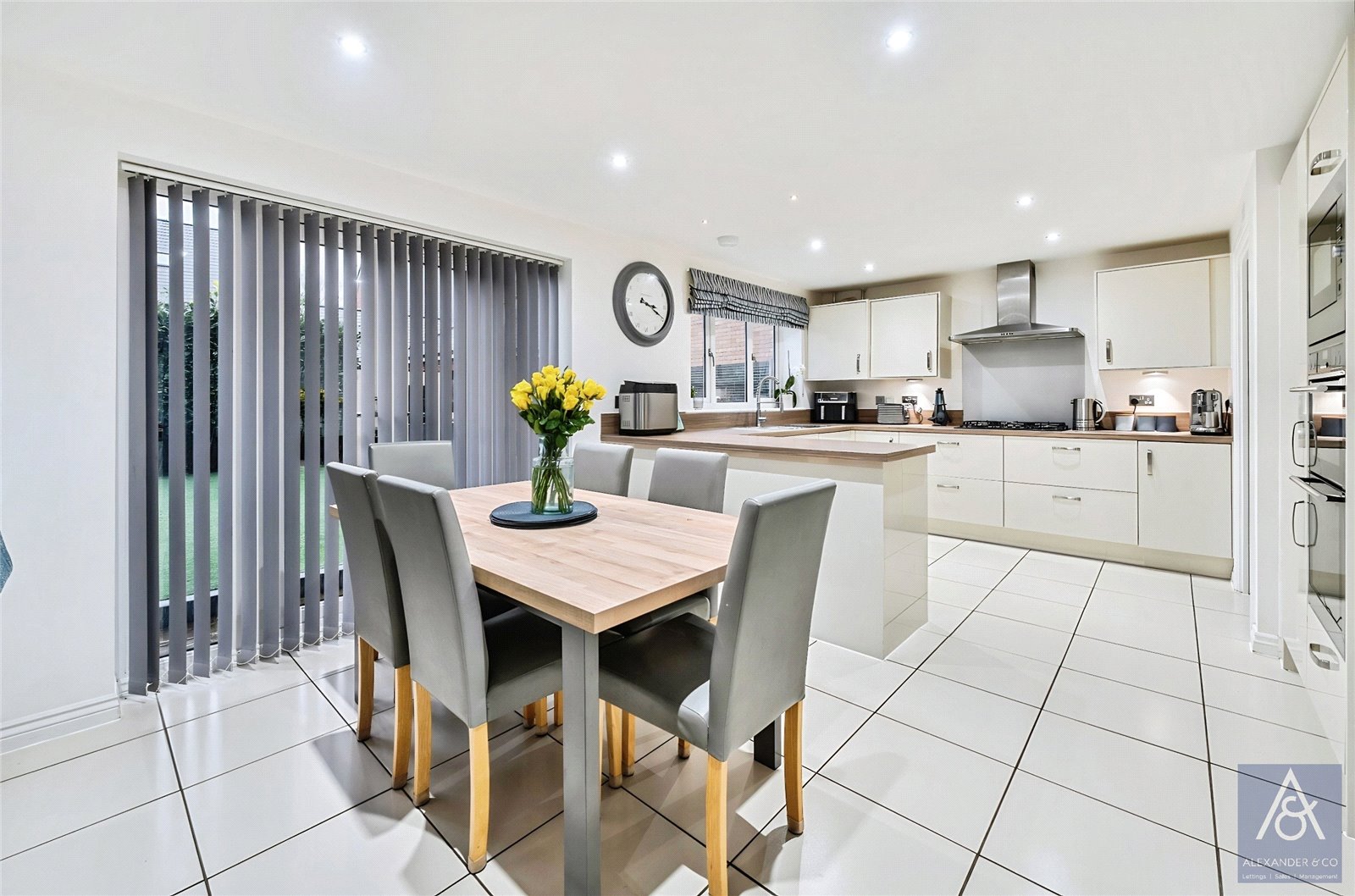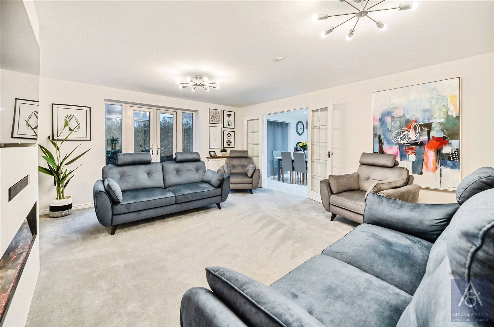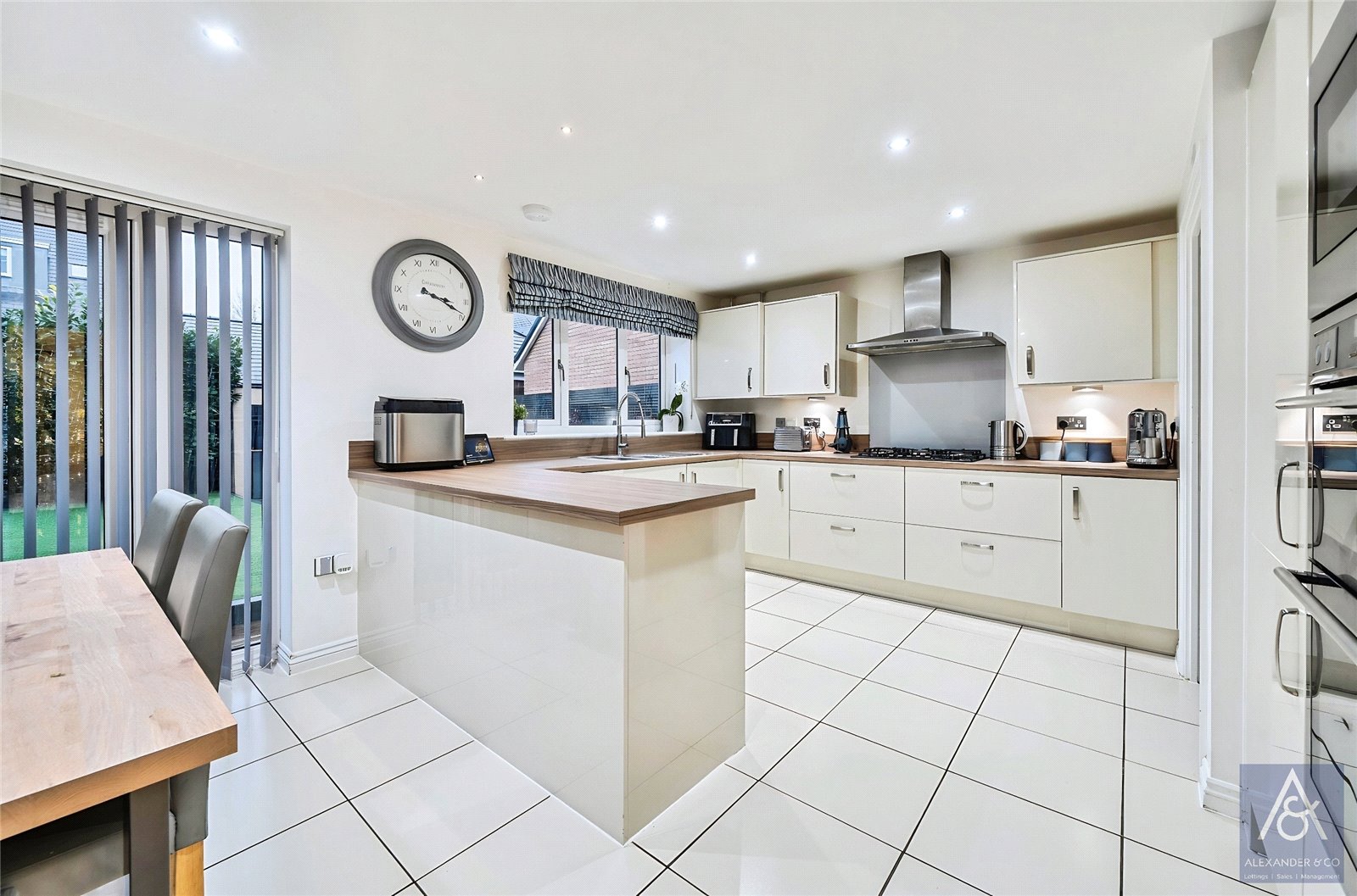 An impressive and handsome five-bedroom property which is ideally located within walking distance to the town centre, local schools, and the nearby park. This generous family home offers versatile accommodation and internally has been fitted out to a high specification. It benefits from having three separate reception rooms with an impressive sitting room with a feature wall incorporating space for a flat screen tv and feature display niches with downlighters and an impressive feature electric fire. There are french doors to the garden and through to the impressive kitchen/breakfast room, which makes it an ideal entertaining social home.