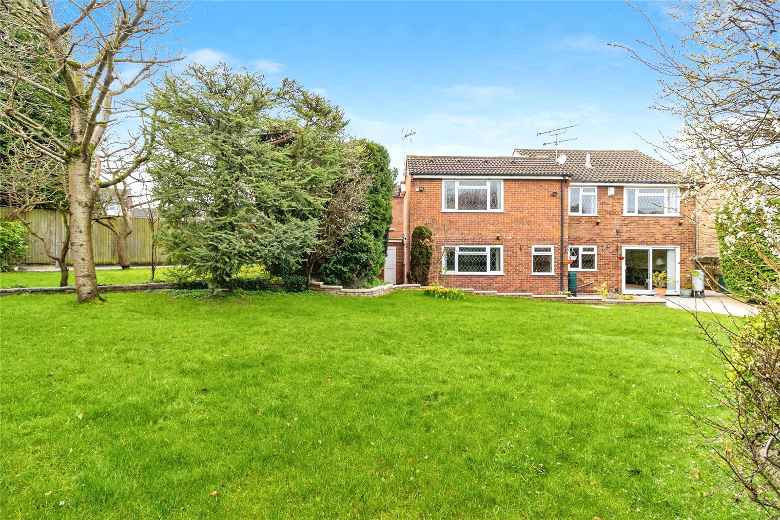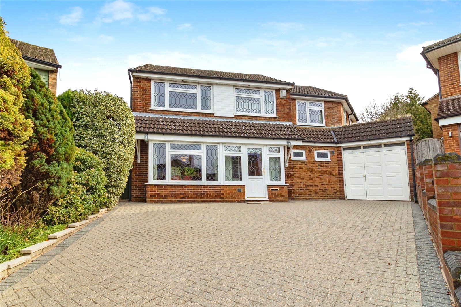 Externally there is a block paved driveway for several vehicles and leads to a garage. The mature rear garden is South facing and spacious, situated on a corner plot with lawn and trees,
