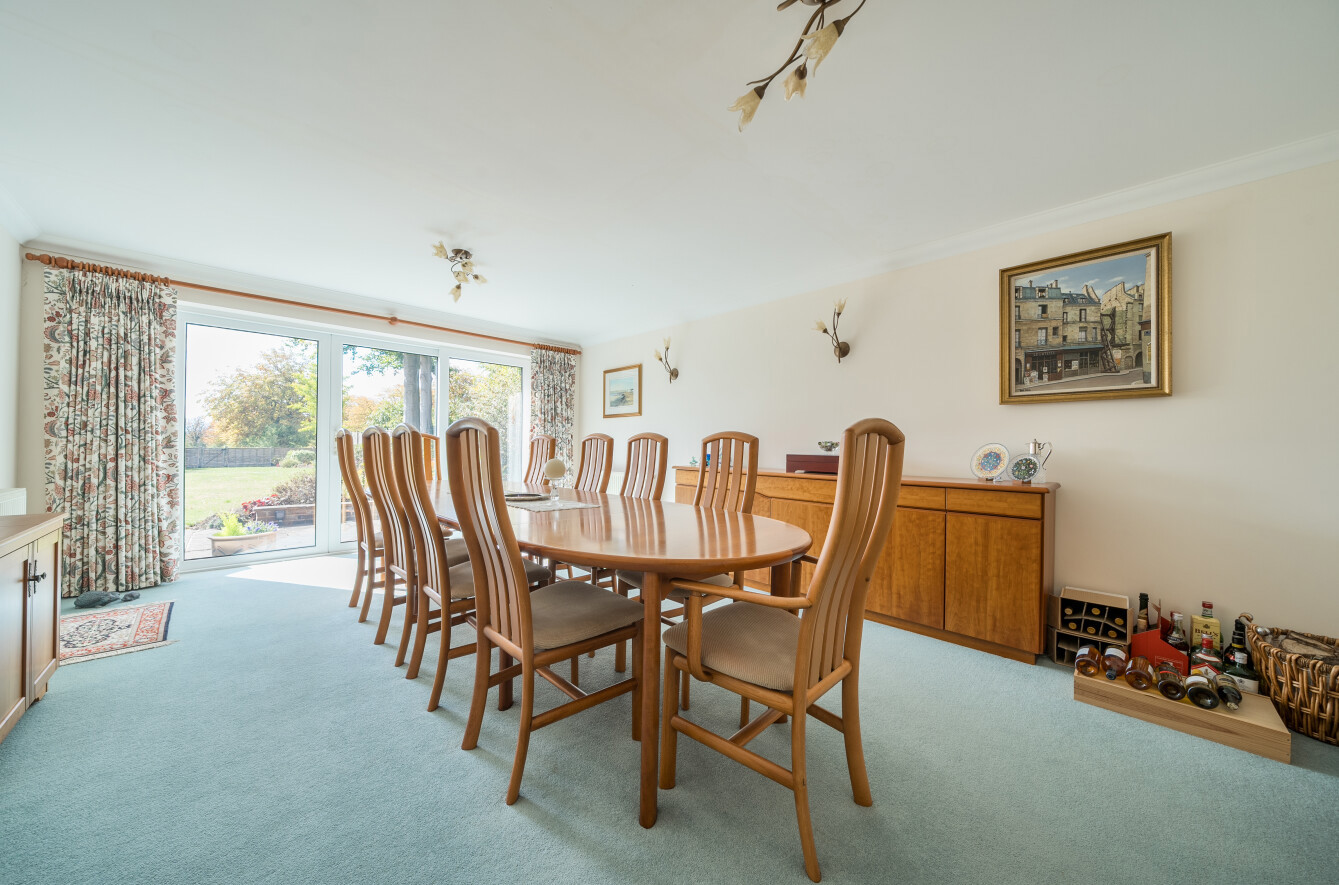 Having been owned by the same family for 20 years the house itself offers unrivalled layout and welcomes you with block driveway sweeping round to the front door. Once inside you are greeted with a large entrance hall with oak stairs leading to the first floor. The expansive lounge is to the left and offers a dual aspect with feature fireplace. The kitchen has been thoughtfully planned with central island and large array of eye level and base units with integrated hob, double oven and space for further appliances. All complimented by Quartz worktops. Adjacent to the Kitchen is the Dining room which has doors out to the garden and is perfect for family meals or dinner parties.