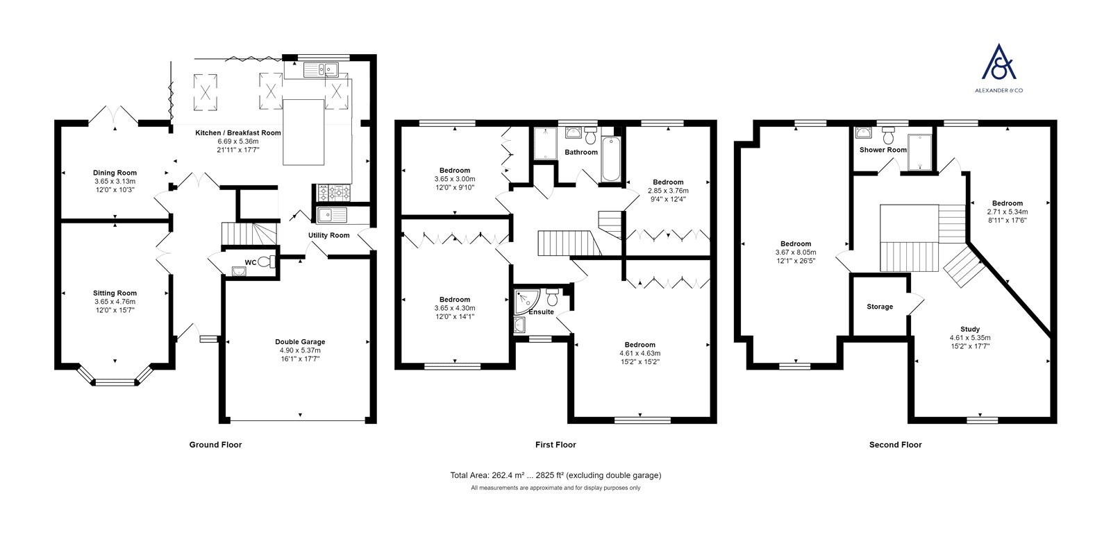 Two second floor bedrooms, shower room & study