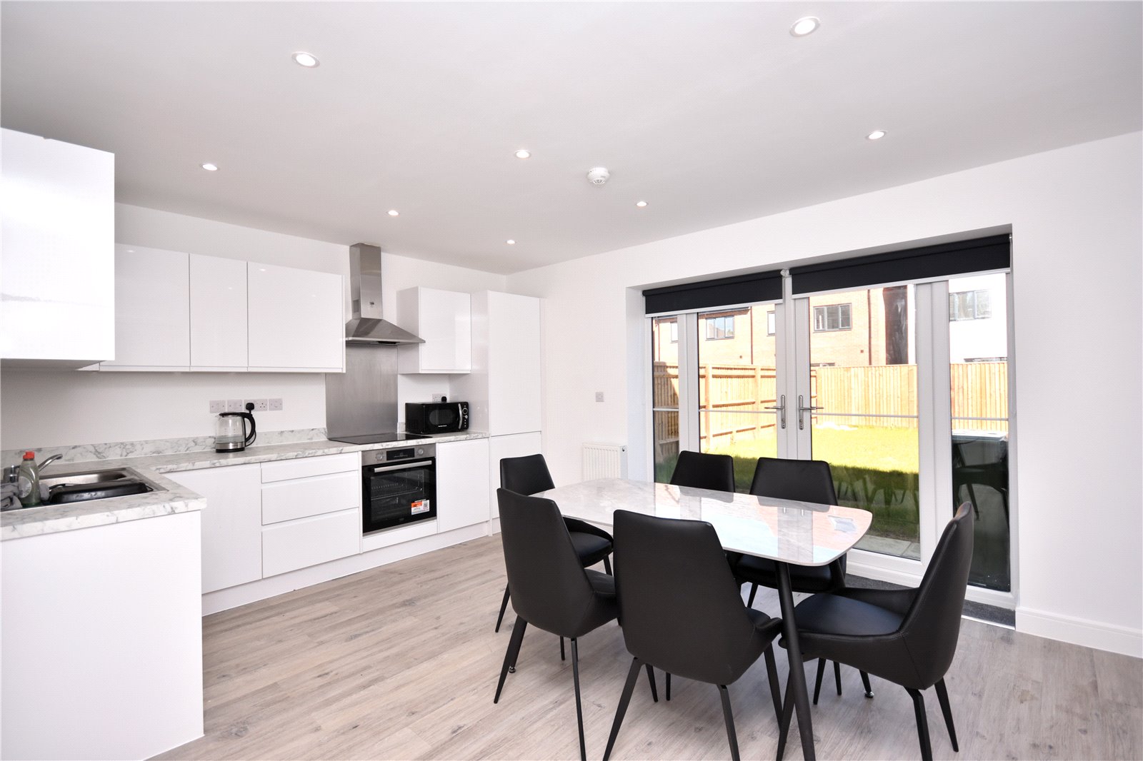Each generously sized double room comes fully furnished with a double bed, wardrobe, bedside table, desk, chair, offering both comfort and practicality. The stylish, fully fitted kitchen features integrated appliances and opens out to a large rear garden, perfect for relaxing or socialising. Additional features include a shared bathroom, separate shower room, and a dedicated office/study space for added convenience.