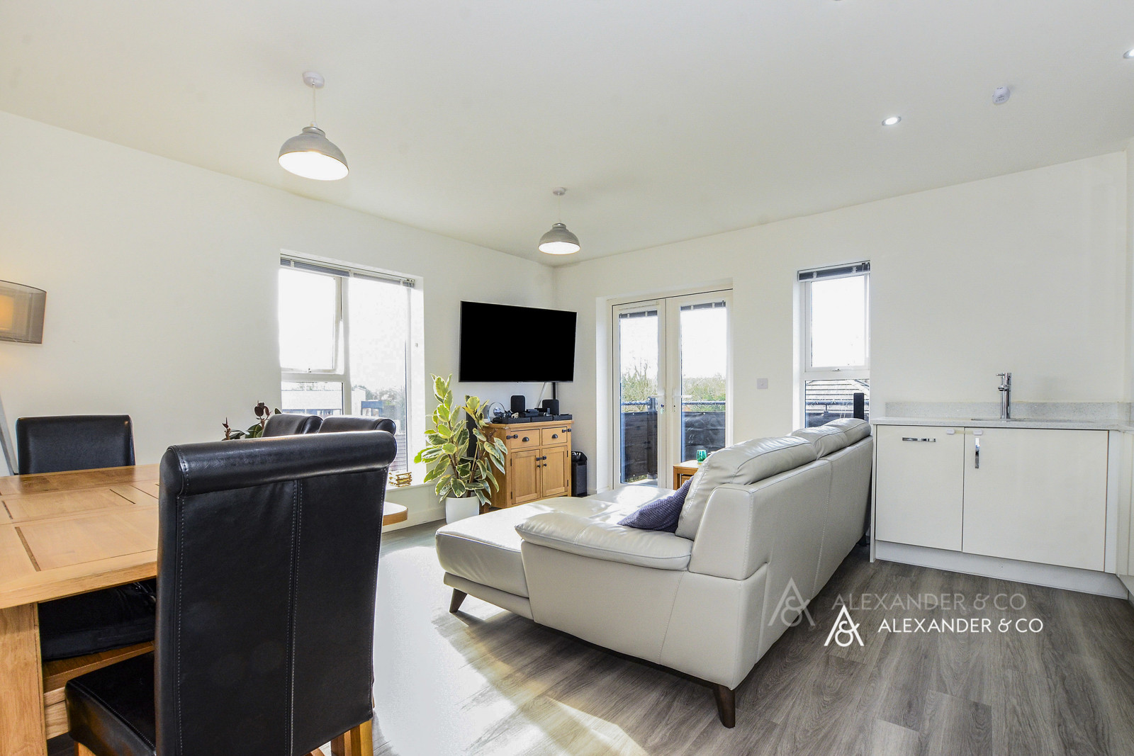 The property features two good-sized double bedrooms, both benefiting from built-in storage. There is a bright and spacious, dual-aspect open-plan kitchen and living area, the kitchen is thoughtfully designed and fitted with sleek integrated appliances, there is also a modern family bathroom and multiple storage cupboards. The apartment also benefits from an good energy efficiency rating, helping to keep running costs lower while maintaining a comfortable living environment.
