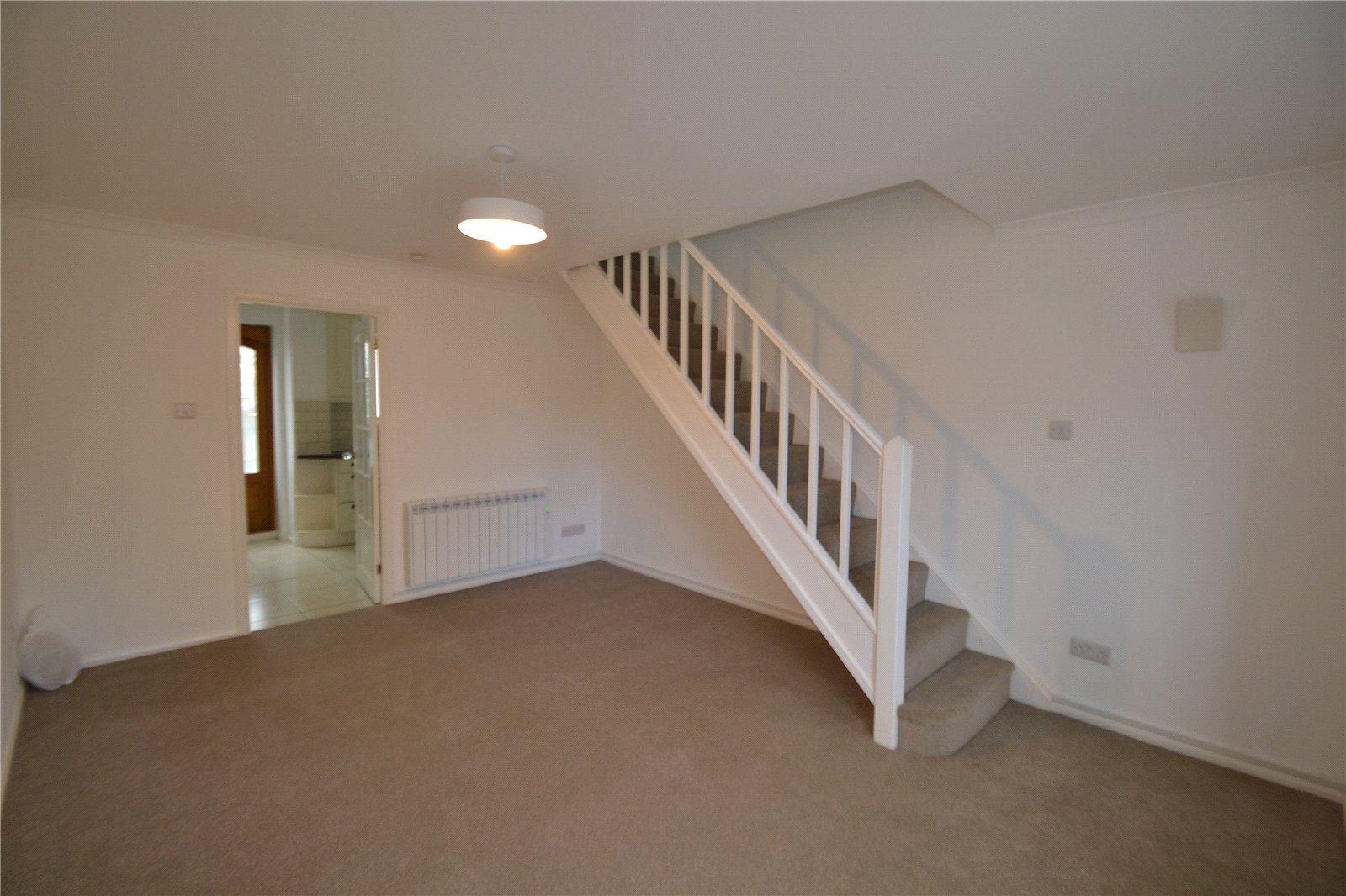 Upstairs are two bedrooms and modern bathroom with three piece white suite and shower over the bath.