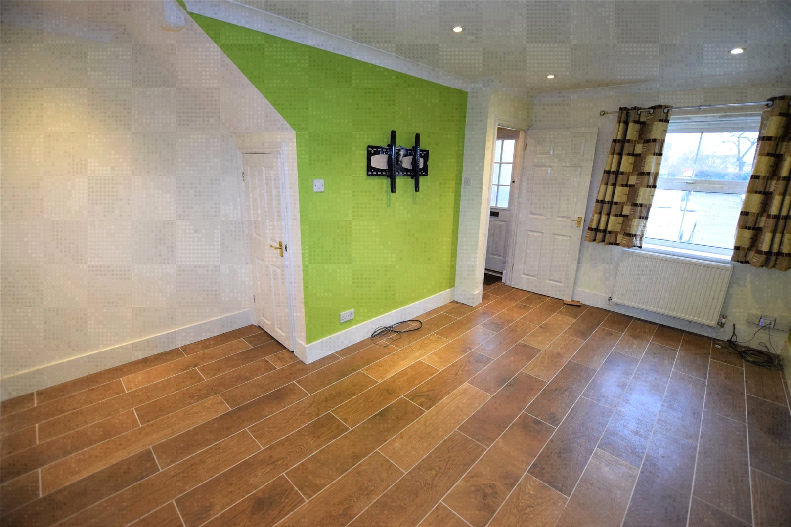 Entrance hall, lounge, kitchen, wet room, gas central heating, double glazing, two double bedrooms, driveway parking, rear garden.