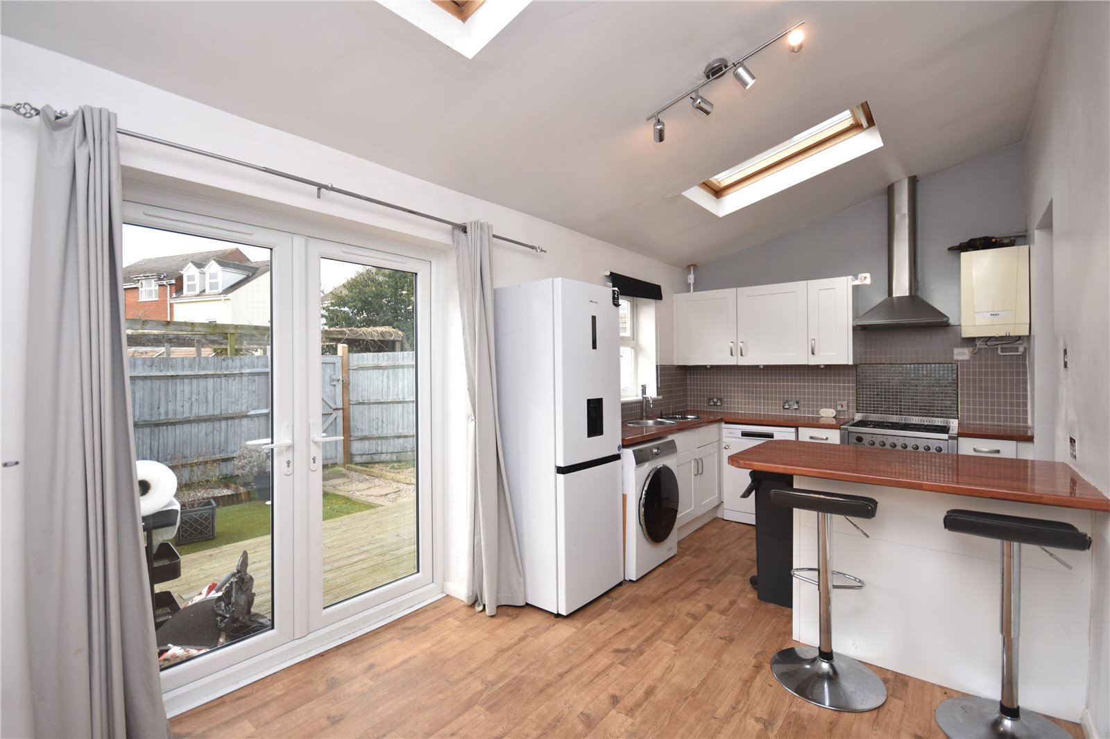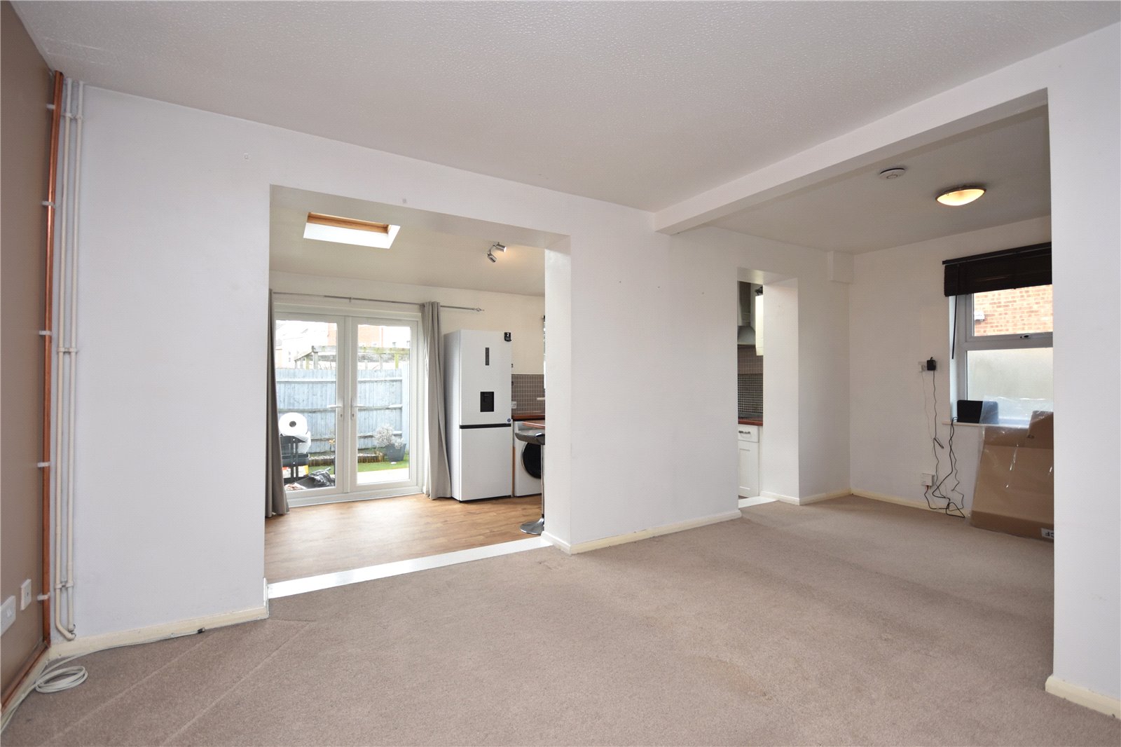 The accommodation opens into a welcoming entrance hall with a useful storage cupboard, leading through to a spacious open-plan lounge and dining area. Elegant arches connect this space to a bright kitchen/breakfast room, which features doors opening directly onto the rear garden. Upstairs, the property offers master bedroom with built-in wardrobes, and further secod bedroom, along with a family bathroom fitted with a shower over the bath. Additional benefits include gas central heating, double glazing throughout, an open-plan front garden, a fully enclosed rear garden ideal for outdoor enjoyment, and allocated parking located to the rear of the property.