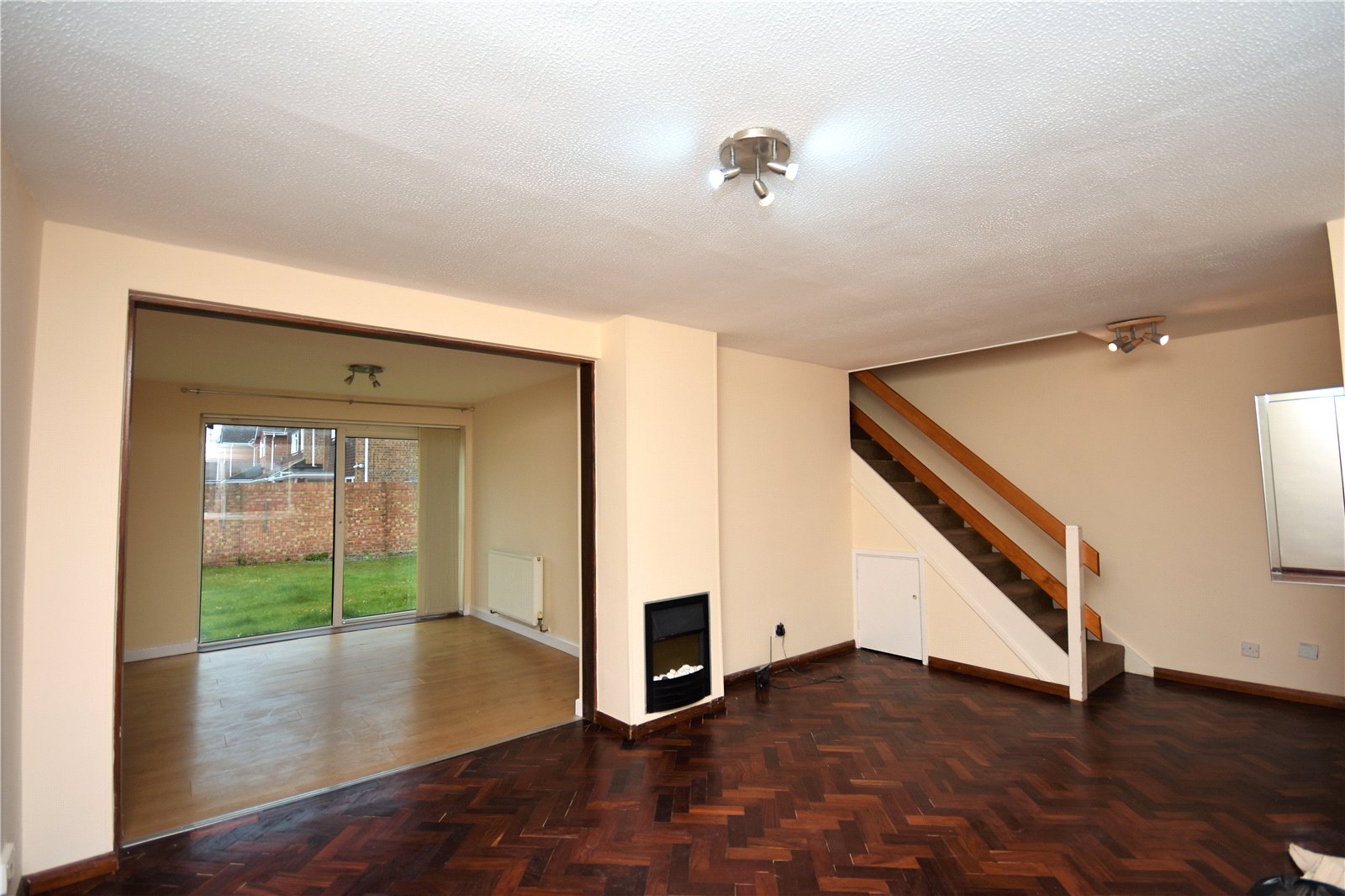 The accommodation comprises entrance porch with downstairs cloakroom / w.c., lounge with parque flooring, archway to dining area with patio door to the rear garden, kitchen with gas cooker, space for fridge/freezer and plumbing for washing machine. Upstairs there is a master bedroom with built-in wardrobe, second double bedroom, third single and a fully tiled family bathroom with shower over the bath. The property further benefits from double glazing, gas central heating, an enclosed rear garden. To the front of the property there is an open plan lawn area, driveway with parking for two cars leading to a double length garage with parking for one to two cars.
