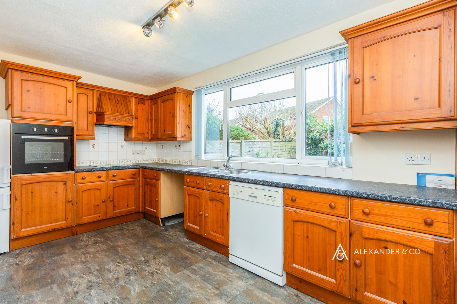 The family bathroom comprises a panel bath with wall mounted shower over, wash hand basin, and WC. To the rear, the extended kitchen features a range of base and eye level units with drawers, ample work surface space, an electric cooker, fridge freezer, dishwasher, and space for a washing machine. A door leads directly out to the rear garden. Upstairs, the property offers three generously sized double bedrooms, along with the added convenience of a separate WC. Externally, the front of the property benefits from a lawned area and ample off road parking for multiple vehicles, in addition to a car port to the side. The rear garden is predominantly laid to lawn, providing an ideal outdoor space for families and entertaining.