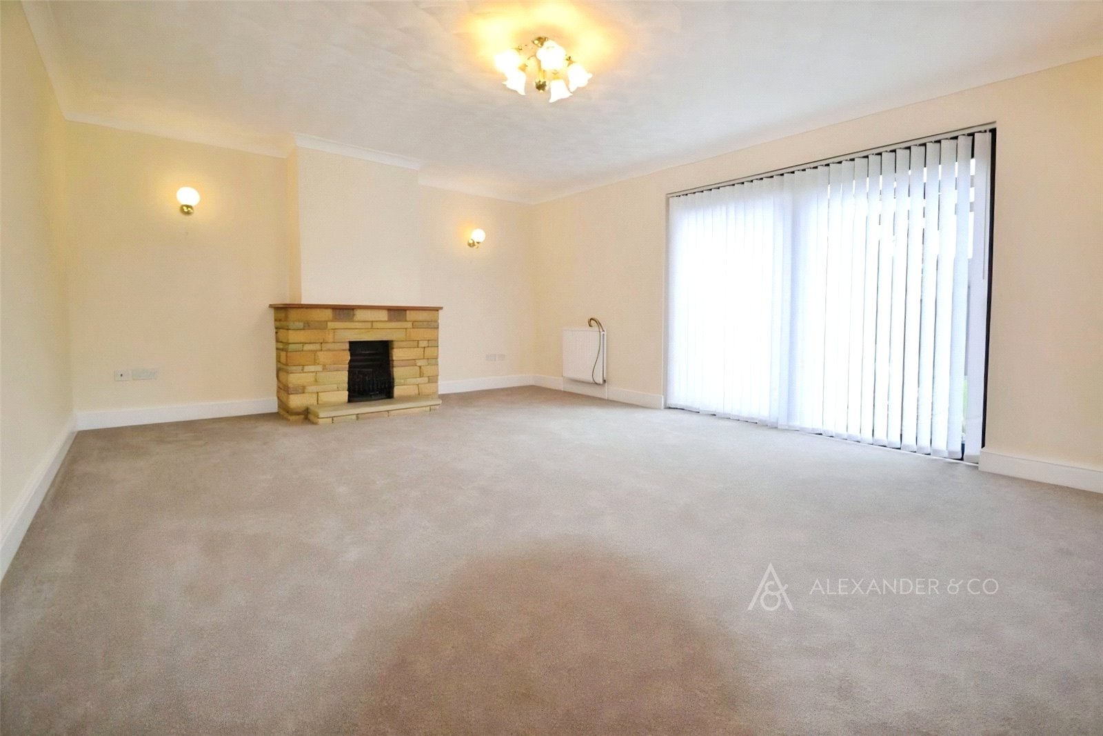 There are two reception rooms both with sliding patio doors leading to the enclosed mature garden with patio, lawn and summerhouse/shed. The lounge has a non working fireplace in brick surround.